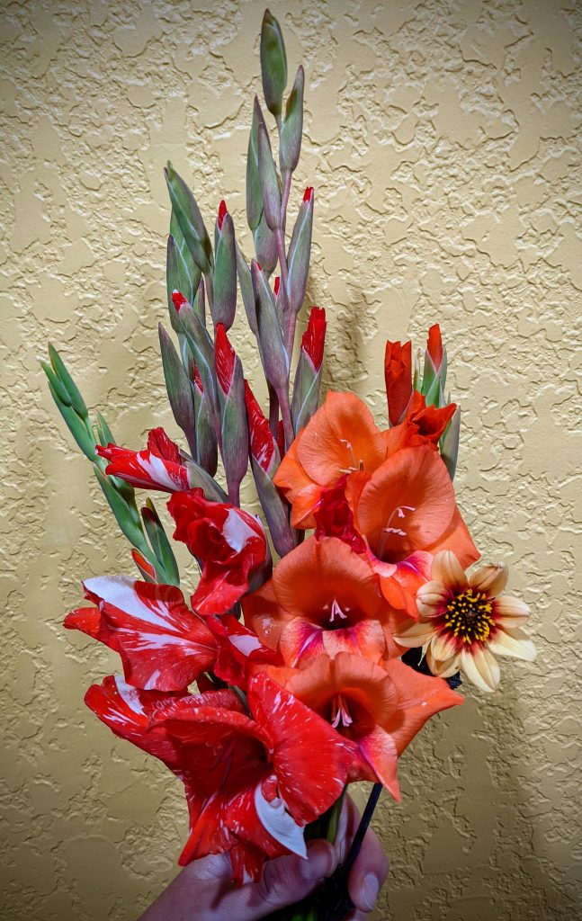Cheery Glads and the last Dahlia of the season!