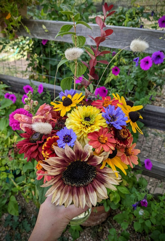 This year I started crafting unique flower bouquets! I planted most of the flowers with bouquets in mind, and started to learn how to arrange cheery bouquets to gift to my family and friends. Giving people an unexpected bundle of blooms always brightens your day, and doing so inspired me to dive into growing cut flowers.